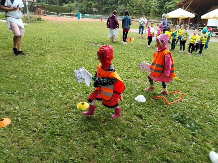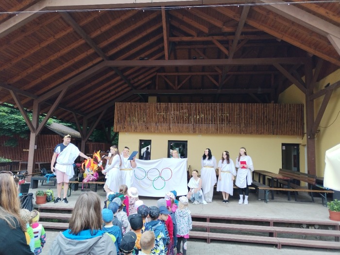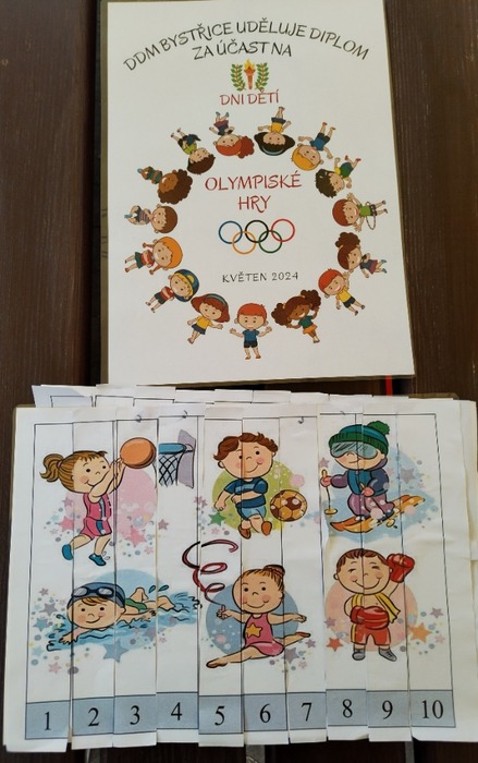 Poslední květnovou středu jsme si zasoutěžili v rámci oslav "Dne dětí." Pestrý den plný úkolů a soutěží si pro nás připravilo DDM Bystřice. Téma letošních oslav byly "Olympijské hry." Hry jsme společně zahájili a pustili se do plnění 10 disciplín, za které jsme obdrželi vždy jeden dílek skládačky, kterou jsme následně složili a získali diplom s odměnou. Děti si dopoledne užily a moc děkujeme kolektivu DDM za přípravu.