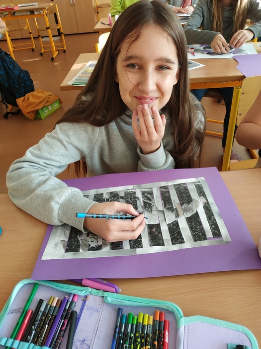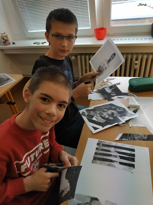 Žáci 7. třídy dnes prožili edukační program s paní edukátorkou Třinecké galerie Veronikou Chmelařovou. Téma bylo Koláže Jiřího Koláře. Žáci získali nejen nové vědomosti, ale hlavně si i své vlastní koláže a mnohdy i roláže vytvořili. Práce je velmi bavila a už se těší i na návštěvu Třinecké galerie.