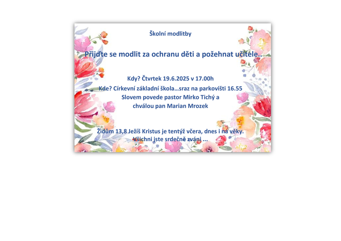 Srdečně Vás zveme na poslední školní modlitby v tomto školním roce,