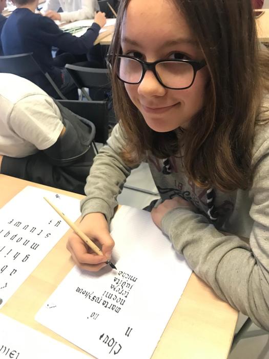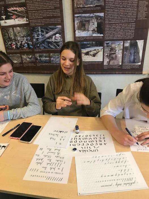 Žáci 8. a 9. třídy se zúčastnili v rámci projektového dne v muzeu v Českém Těšíně přednášky Umění kaligrafie.