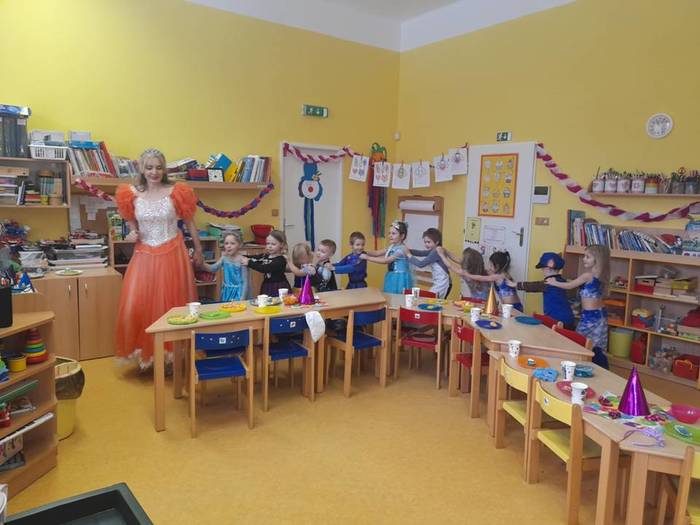 V únoru jsme měli ve školičce karneval s princeznou, užili jsme si srdíčkový den i nově napadaný sníh.